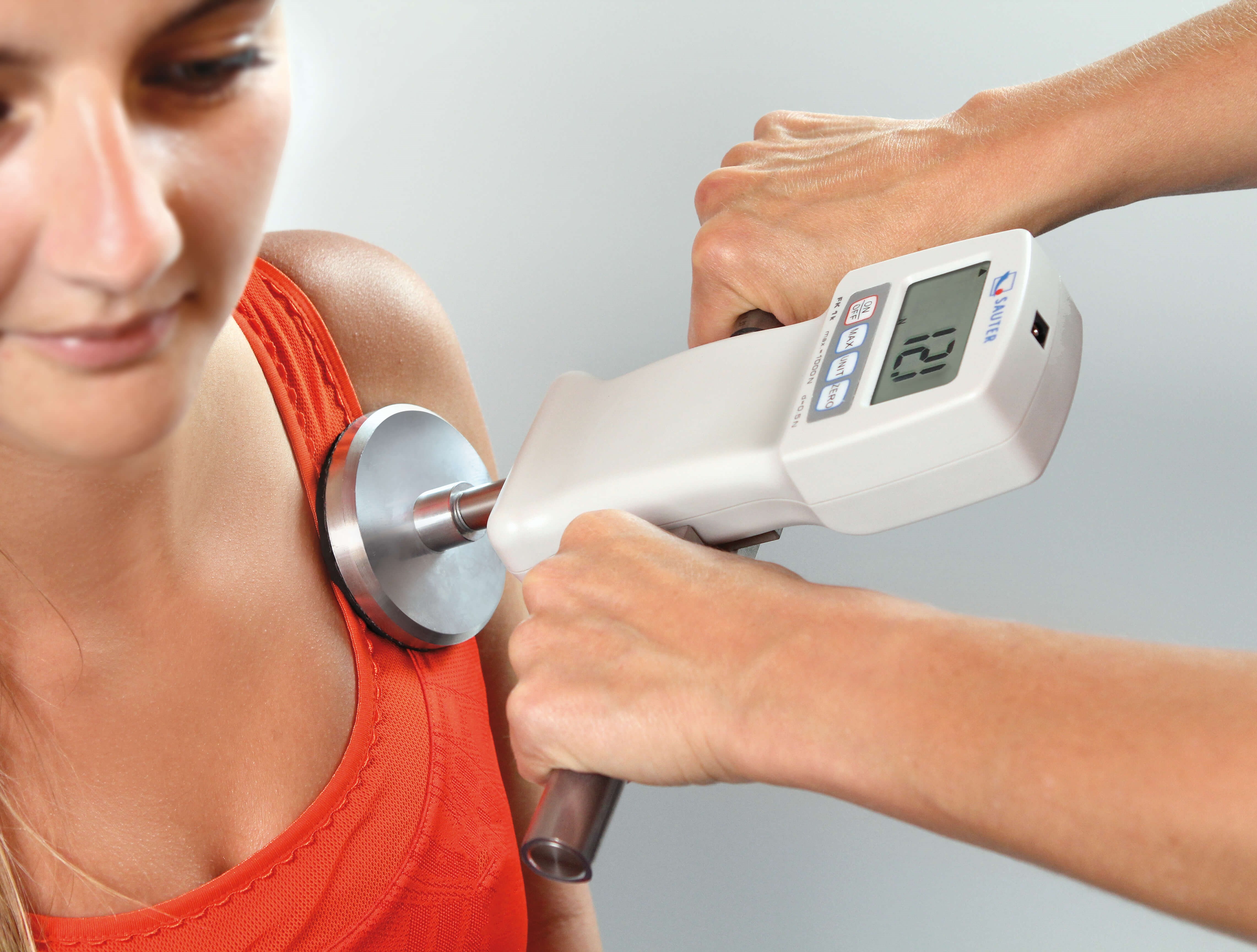 Round sensor to measure particular muscle groups, such as, for example, the shoulder to 1000 N, 1 piece