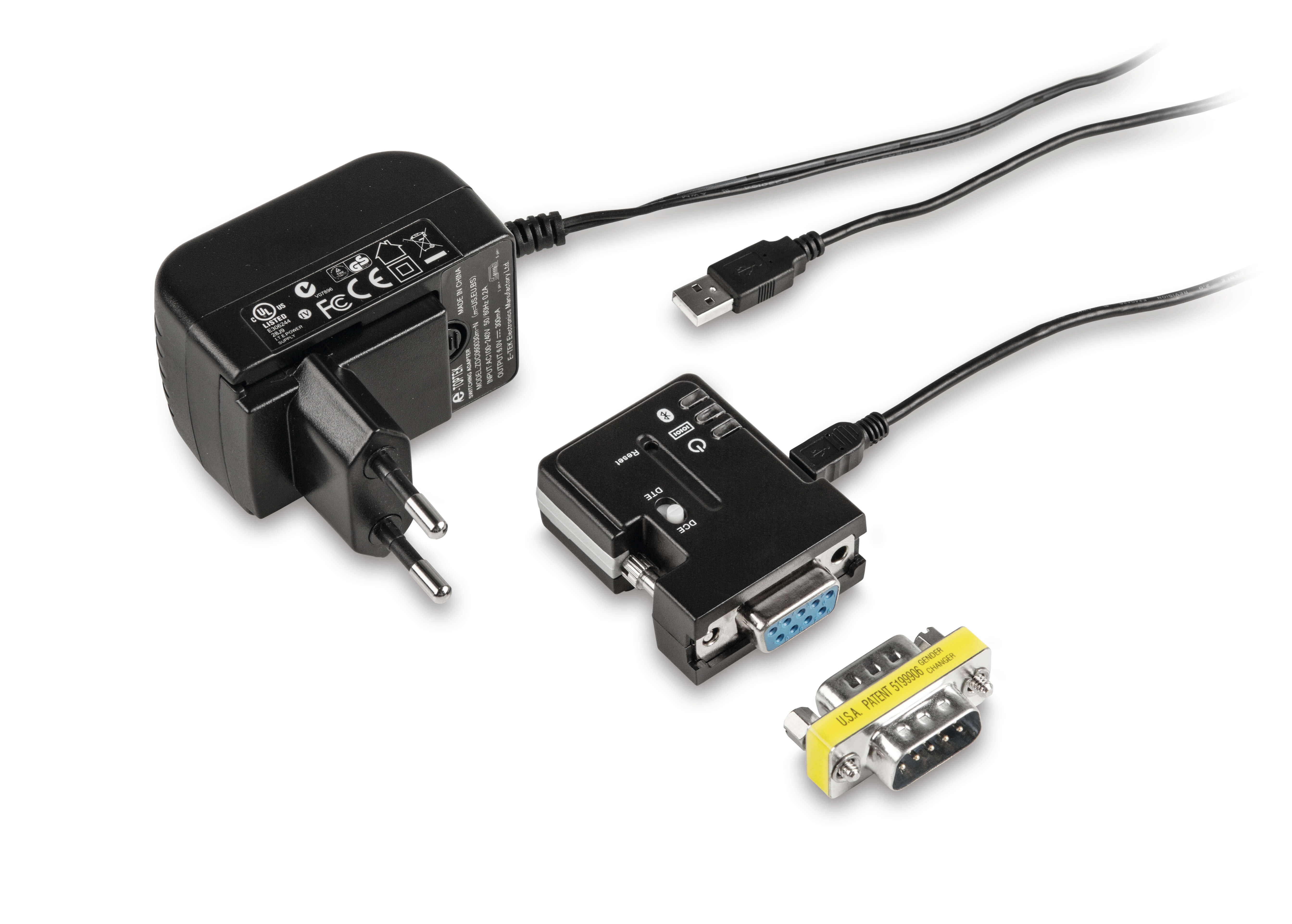 RS-232/Bluetooth adapter: Adapter for the wireless connection of balances, force measuring devices etc. to an RS-232 interface to Bluetooth devices, such as Bluetooth printers (e. g. KERN YKC-01), tablets, laptops, Smartphones etc.