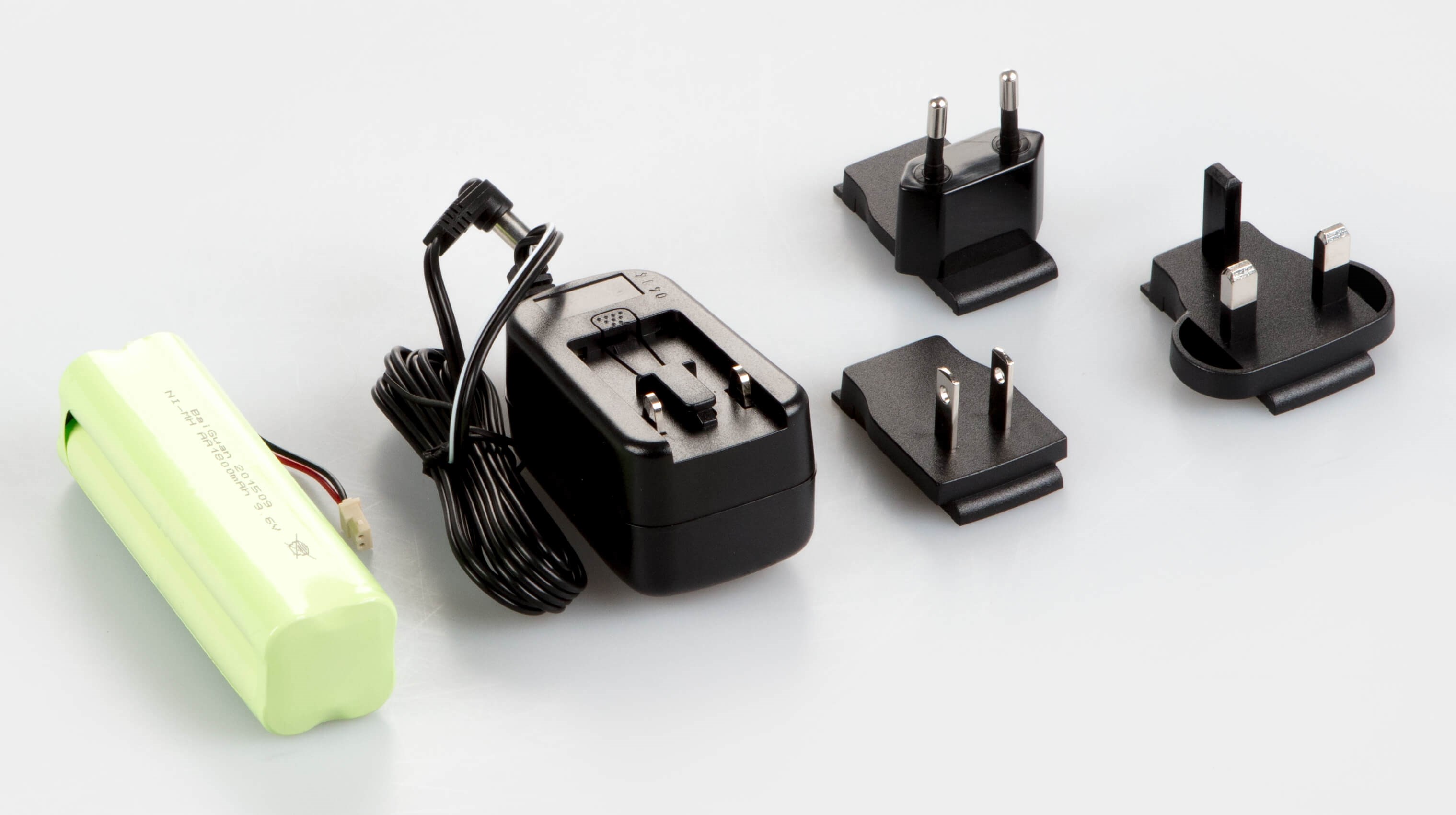 Rechargeable battery pack internal, operating time up to 48 h, charging time approx. 8 h. AUTO-OFF function to preserve the battery, can be switched off (adapter EU)