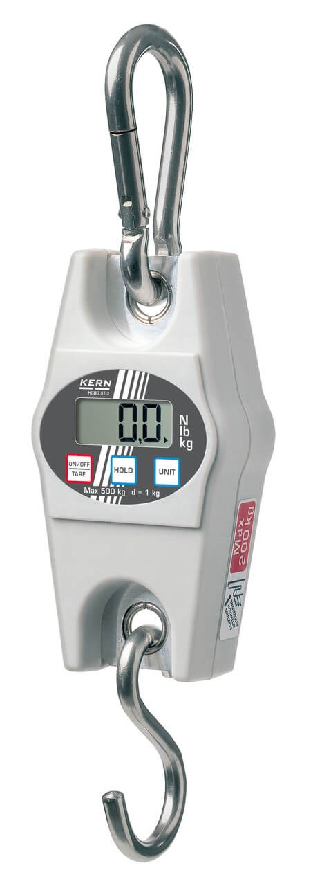 • Ideal for rapid control in goods-in and goods-out • Essential too in the private sector to determine the weight of fish, game, fruits, bicycle parts, suitcases etc. • Hold function: For easy reading of the weighing result, the display can be frozen in different ways. Either automatically when the weighing value remains unchanged or manually by pressing the Hold key • Peak load display (peak hold), measuring frequency 5 Hz • HCB with >= 0,5 t: Reinforced version for heavy loads. Snap link and Hook not included