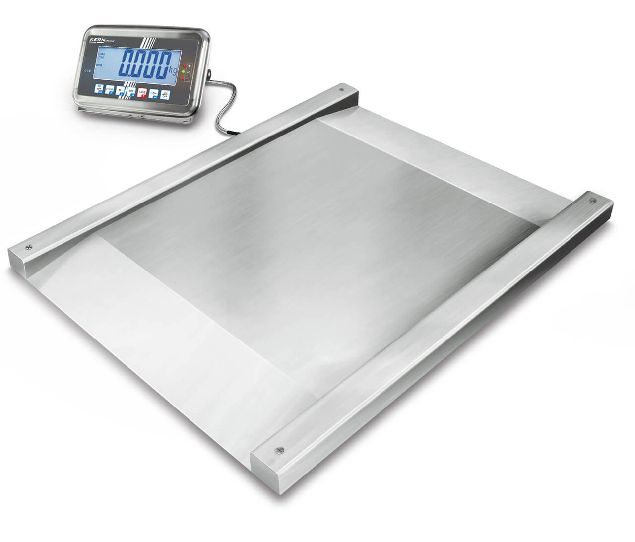 • Robust drive-through scale made of stainless steel for rapid weighing of e.g. , shelf trolleys, container trolleys, storage trolleys, transport case, transpallets, mobile containers etc. • Low platform height and integrated access ramps on both sides facilitate access. • Weighing bridge: made entirely of stainless steel, extremely resistant to bending due to material thickness, protection against dust and water splashes IP68, 4 welded stainless load cells. Also available as component without the display device, KERN KFD-V40 • Ideal for the pharmaceutical and chemical industries • Your support in a HACCP-compliant quality system • Display device: KERN KFN-TM • Totalising of weights and piece countsOur large, heavy KERN floor scales are sent in a sturdy wooden crate, to ensure safe transportation and protection of the measuring equipment
