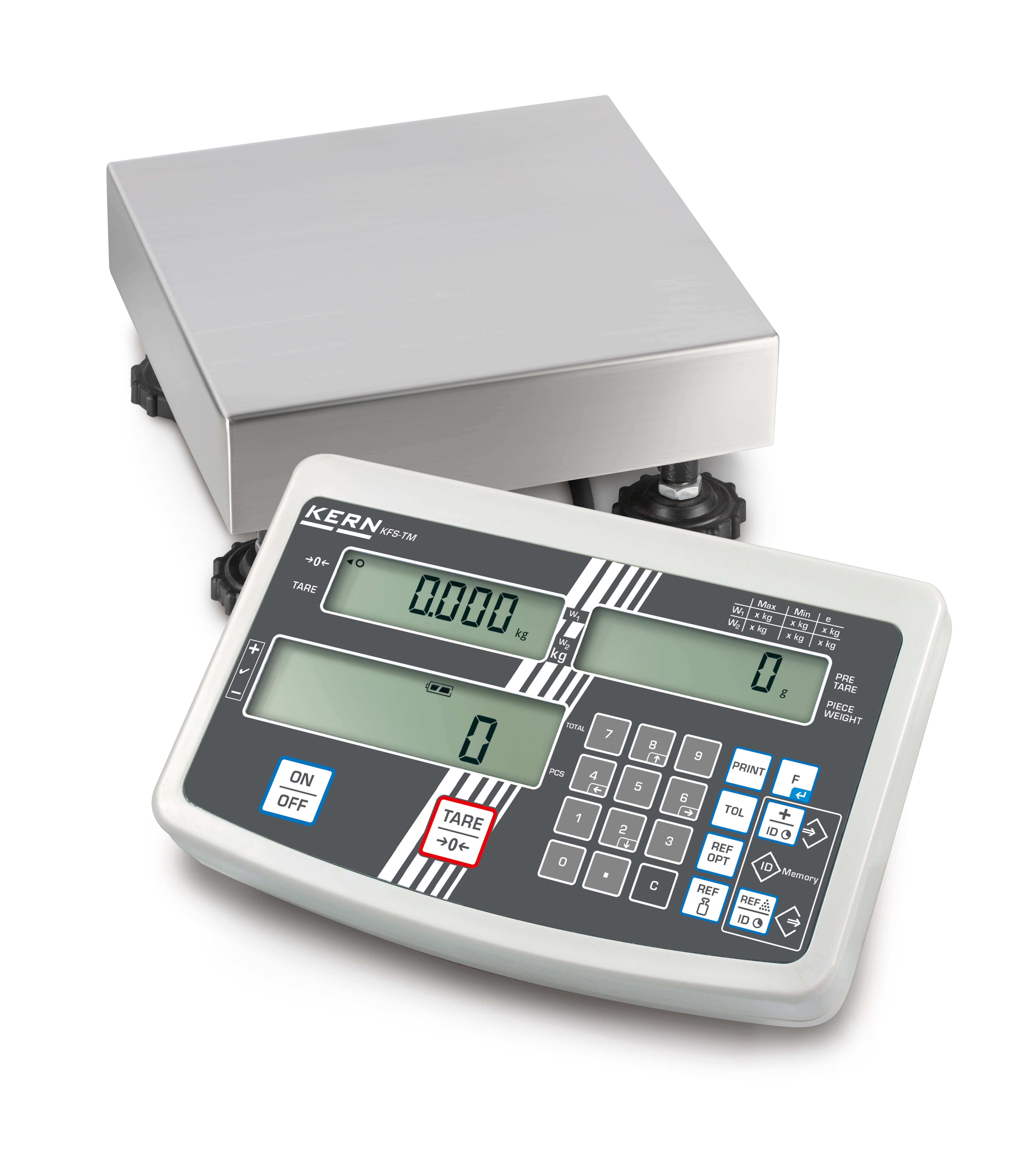 • Industrial quality: heavy version for tough usage in industrial applications • Ergonomic display device with large keypad and high-contrast LCD display for easy entry and reading of, e.g., tare weights, reference weights, limit values etc. • 99 item memories for master data such as reference weight, reference quantity, container weight (PRE-TARE) etc. • Precise counting: The manual reference weight optimisation gradually improves the average value of the piece weight • Totalising of pieces when counting