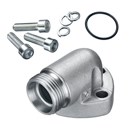 WP-3-LK40-28L-W3-K: 90° Elbow Pump Flange, 3-hole External Thread, Size: LK40, c/w metric Bolts 8.8, Spring Rings & O-Ring(NBR), Carbon Steel C6F