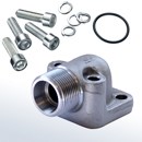 WP-LK35-16S-W3-K: 90° Elbow Pump Flange, 4-hole External Thread, Size: LK35, c/w metric Bolts 8.8, Spring Rings & O-Ring(NBR), Carbon Steel C6F |