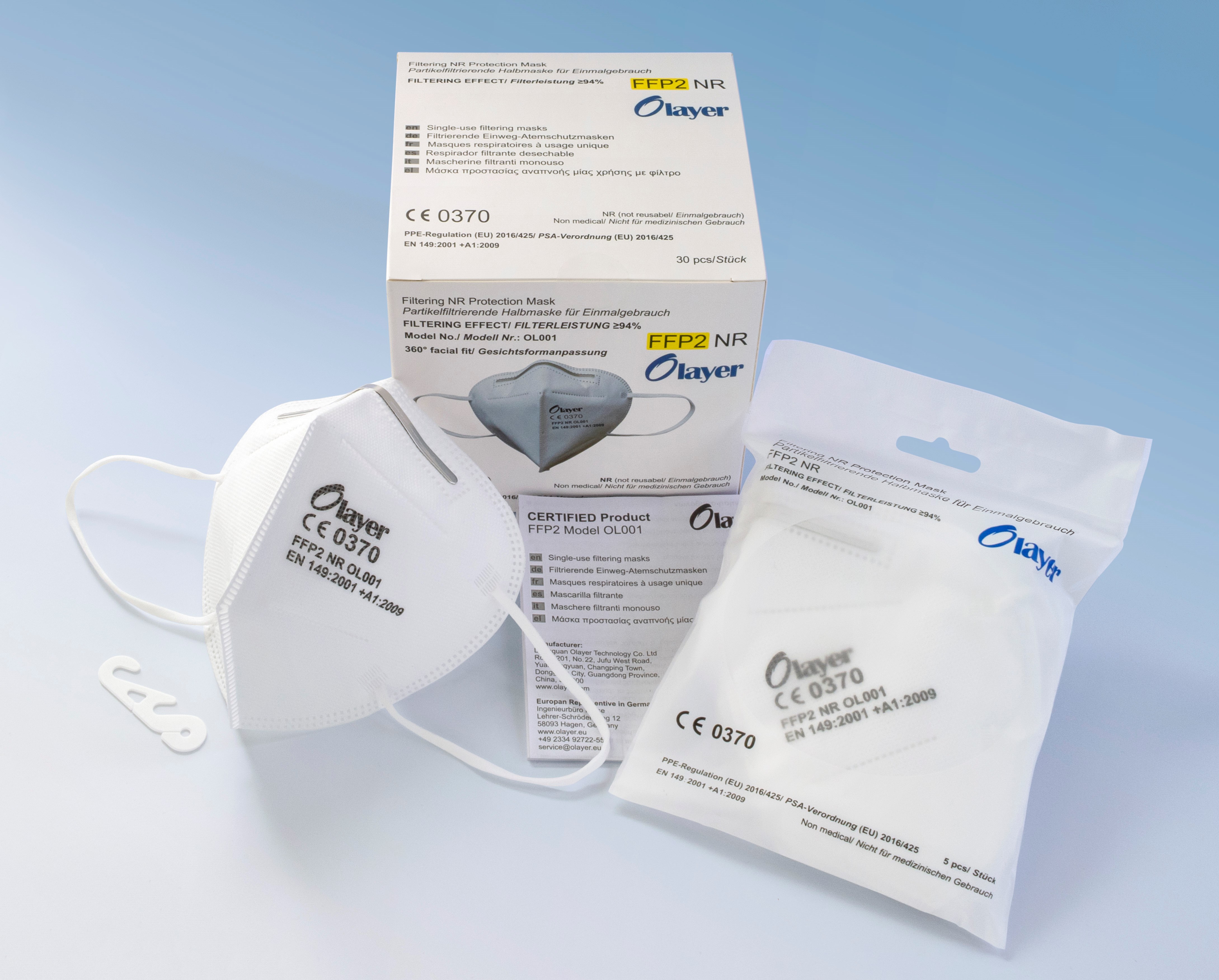 Korkealaatuisessa Olayer FFP2 NR hengityssuojaimessa on neljä suodattavaa kerrosta. Ilman venttiiliä. Mukava käyttää, helppo hengittää. Ylittää ominaisuuksiltaan FFP2 luokituksen moninkertaisesti, vastaa ominaisuuksiltaan FFP3 luokitusta. Mukavuuden maksimoimiseksi suojain voidaan kiinnittää myös niskan taakse mukana tulevalla pidikkeellä, jossa on kaksi eri kireysasentoa.
