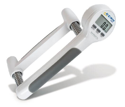KERN MAP puristusvoimamittaria voidaan käyttää käden puristusvoiman mittamiseen esim. loukkaantumisen jälkeisessä kuntoutuksessa. Mittarin mukana tulee erilaisia jousia mitta-alueen säätämiseksi. Normaalin mittaustoiminnon lisäksi laitteetessa on huippu- ja keskisarvotoiminto.