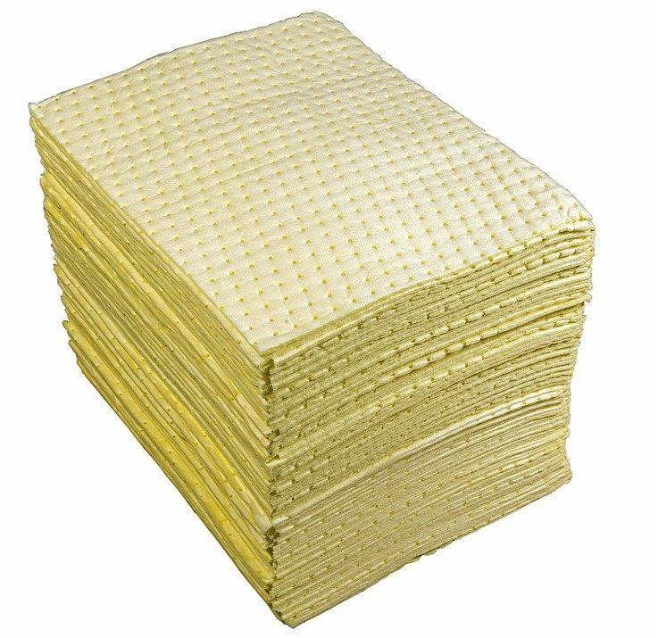 Kemikaalien imeytysarkki hapoille, koko 40 x 50 cm. Pakkauskoko 100 kpl.