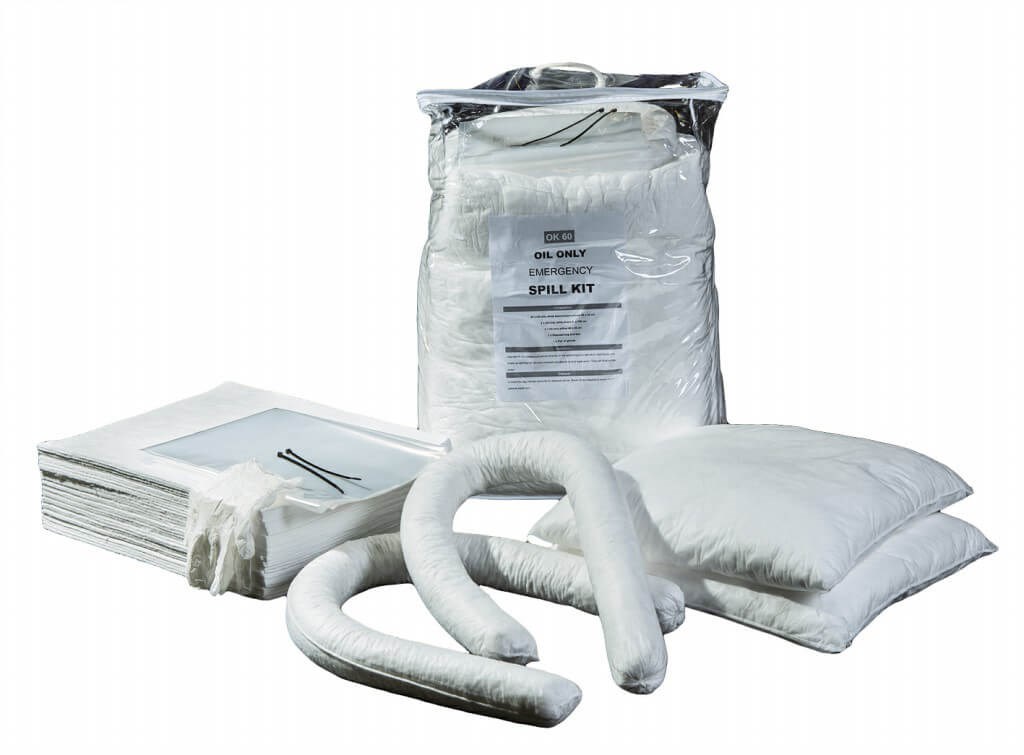 Öljynimeytyspakkaus (70x50x30 cm), sisältää: 30 kpl paksuja Oil Only arkkeja (40 x 50 cm), 2 kpl imeytyspuomia 8 x 120 cm, 2 kpl imeytystyynyjä (46x46 cm), jätesäkin ja kertakäyttöhanskat. Imukyky 60 litraa.